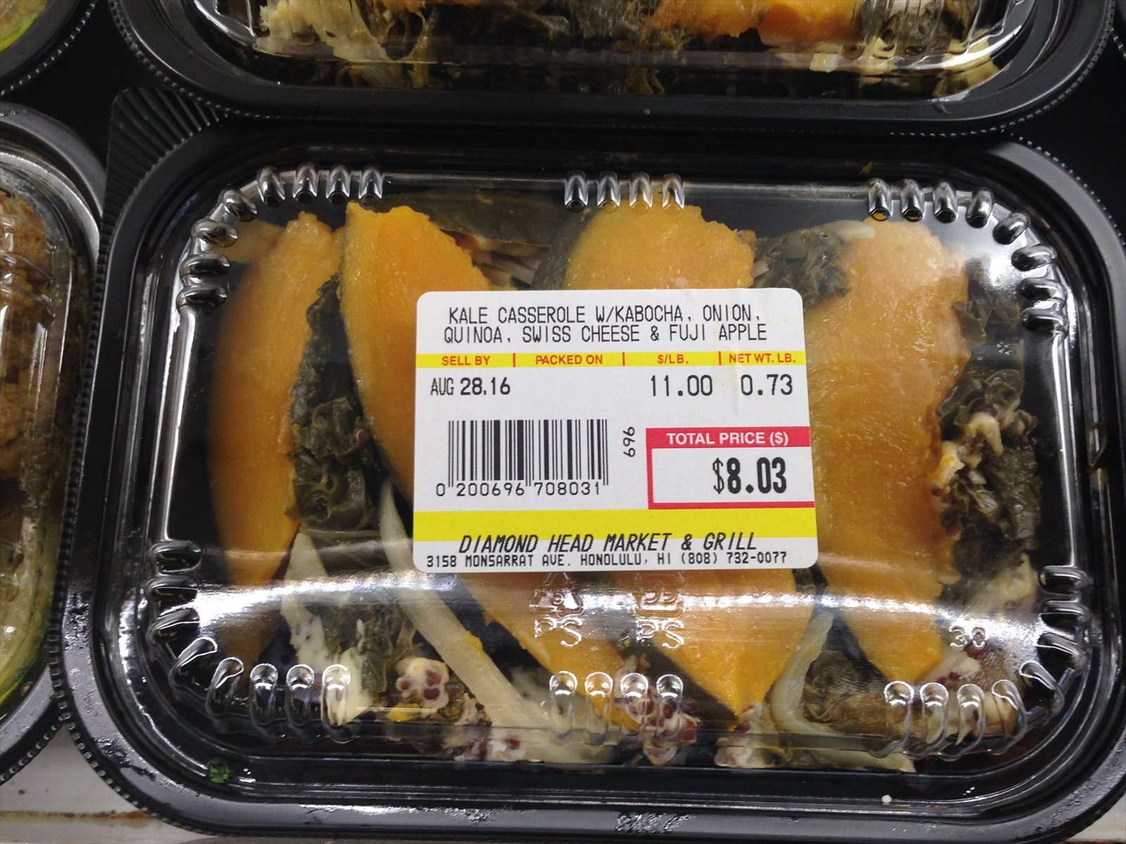 こちらのカボチャの下には蒸し焼きされたケールとキヌア、チーズ、リンゴが入っているようです。